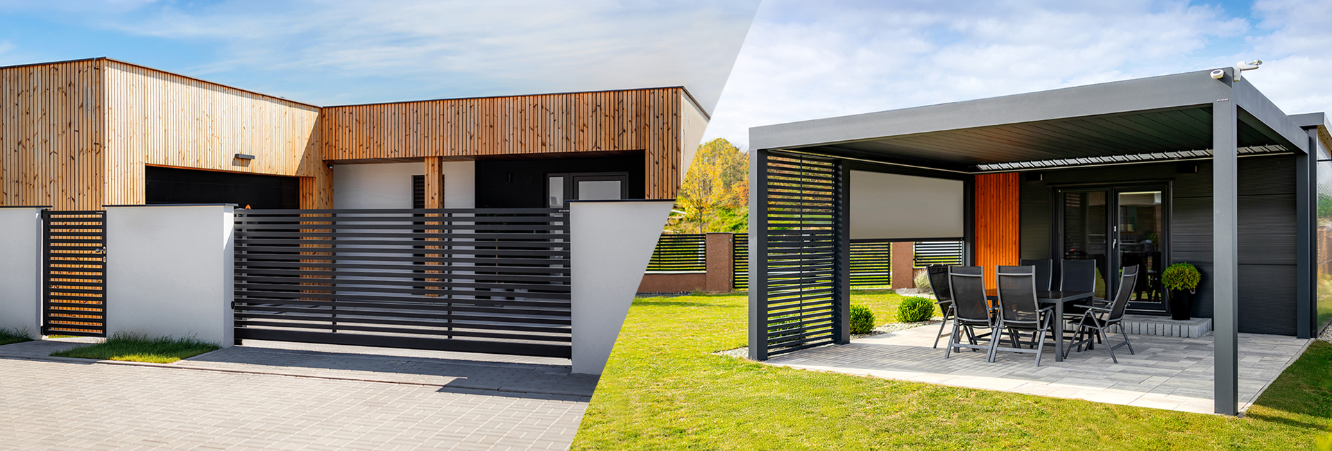 Pro tuto realizaci si zákazník vybral bioklimatickou samostatně stojící pergolu v elegantní šedé antracitové barvě, která se stala moderním doplňkem jeho zahrady. Pergola je vybavena screenovými roletami, které poskytují příjemný stín a chrání před větrem. Celkový komfort zajišťují chytré doplňky, jako jsou pohon a řídicí jednotka, dešťové čidlo, větrné čidlo a ovládání, což umožňuje plně automatizovaný provoz pergoly přizpůsobený aktuálním povětrnostním podmínkám. Pergola zahrnuje i LED osvětlení, díky kterému si můžete vychutnat pohodovou atmosféru i ve večerních hodinách.