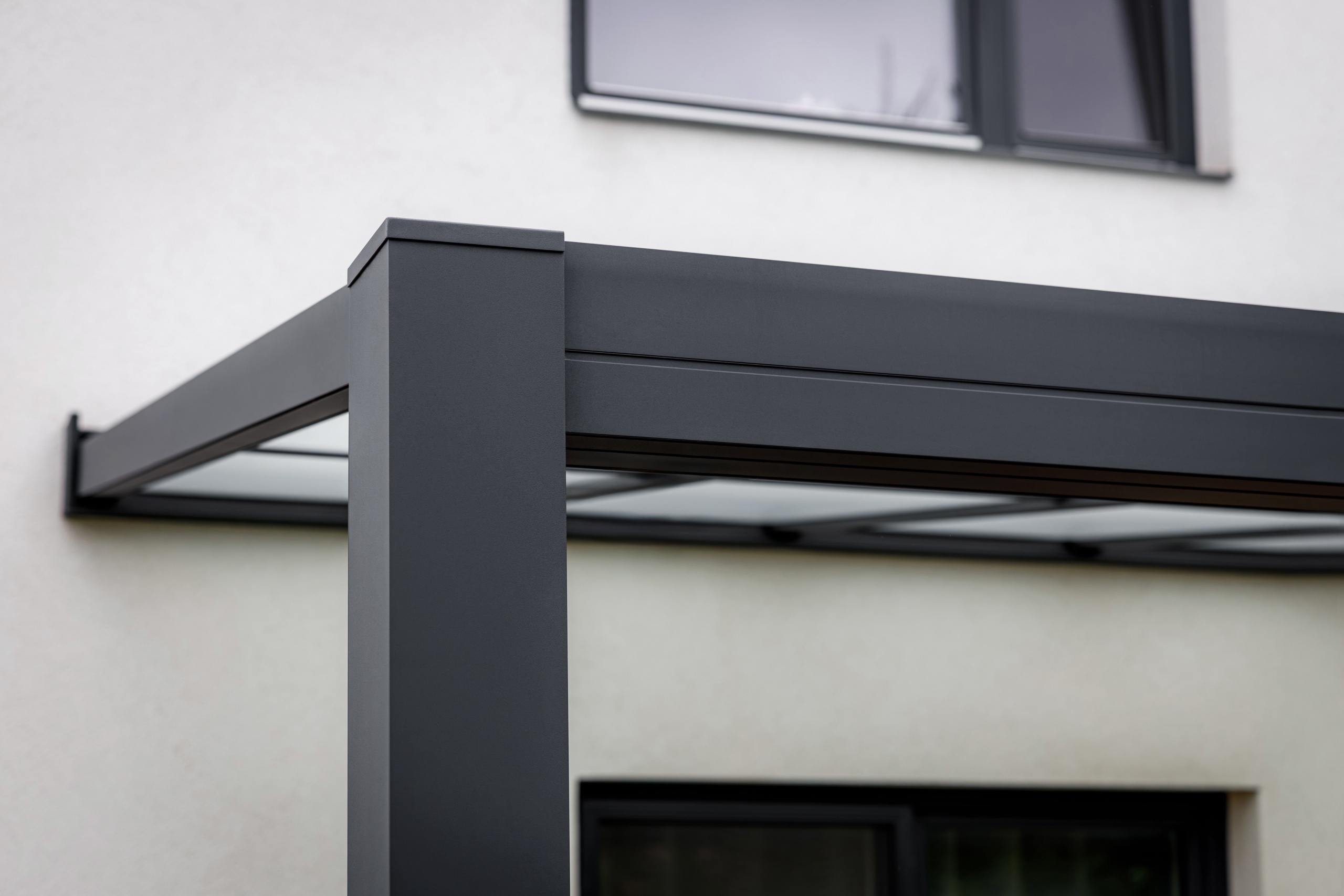 V této realizaci si zákazník zvolil pergolu se skleněnou střechou přisazenou ke stěně domu v elegantní šedé antracitové barvě. Tato pergola nabízí stylový přechod mezi domovem a zahradou, přičemž vytváří útulný prostor pro relaxaci či společenská setkání. Skleněná střecha propouští přirozené světlo, což zajišťuje příjemnou atmosféru, zatímco robustní hliníková konstrukce garantuje dlouhou životnost a maximální stabilitu.