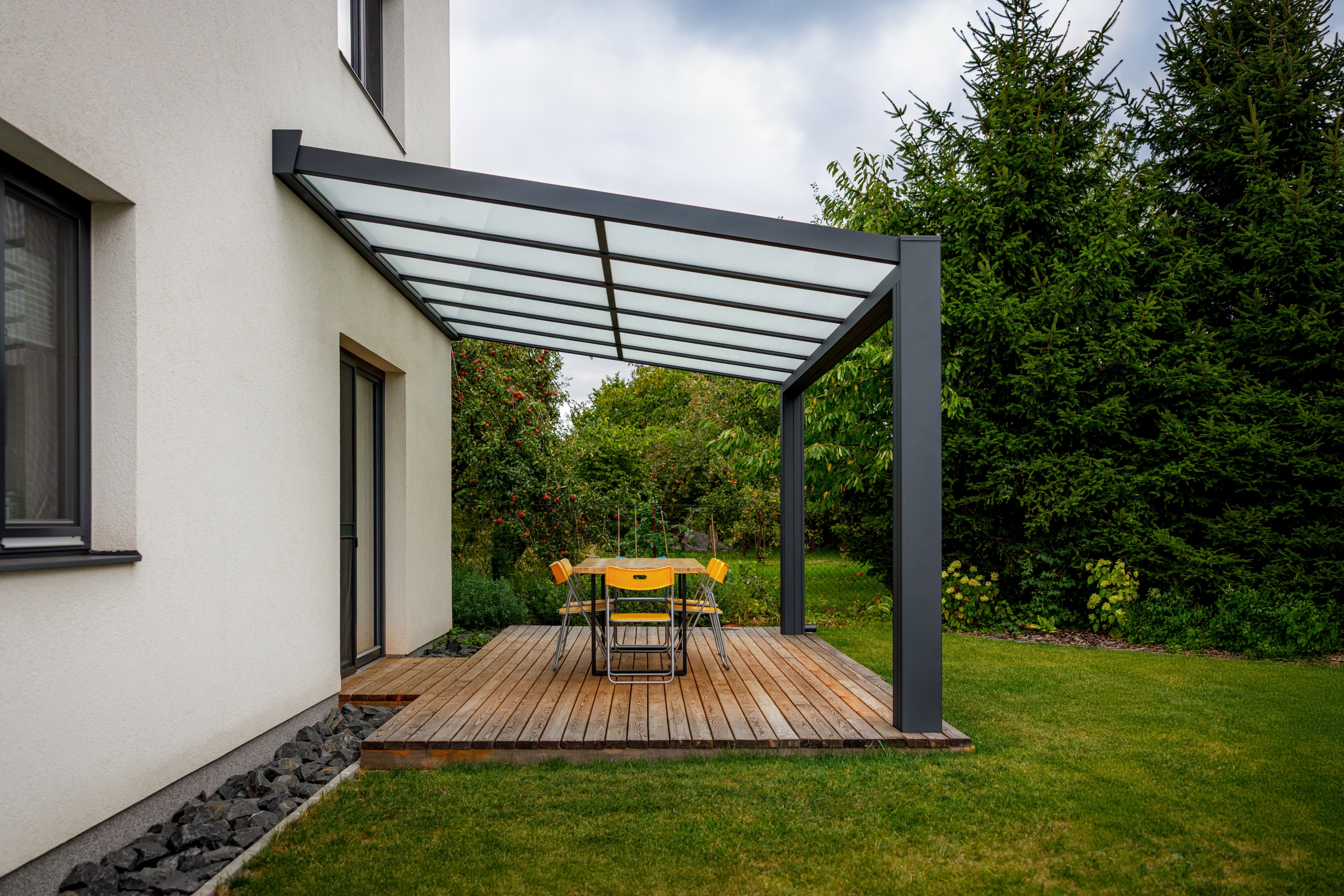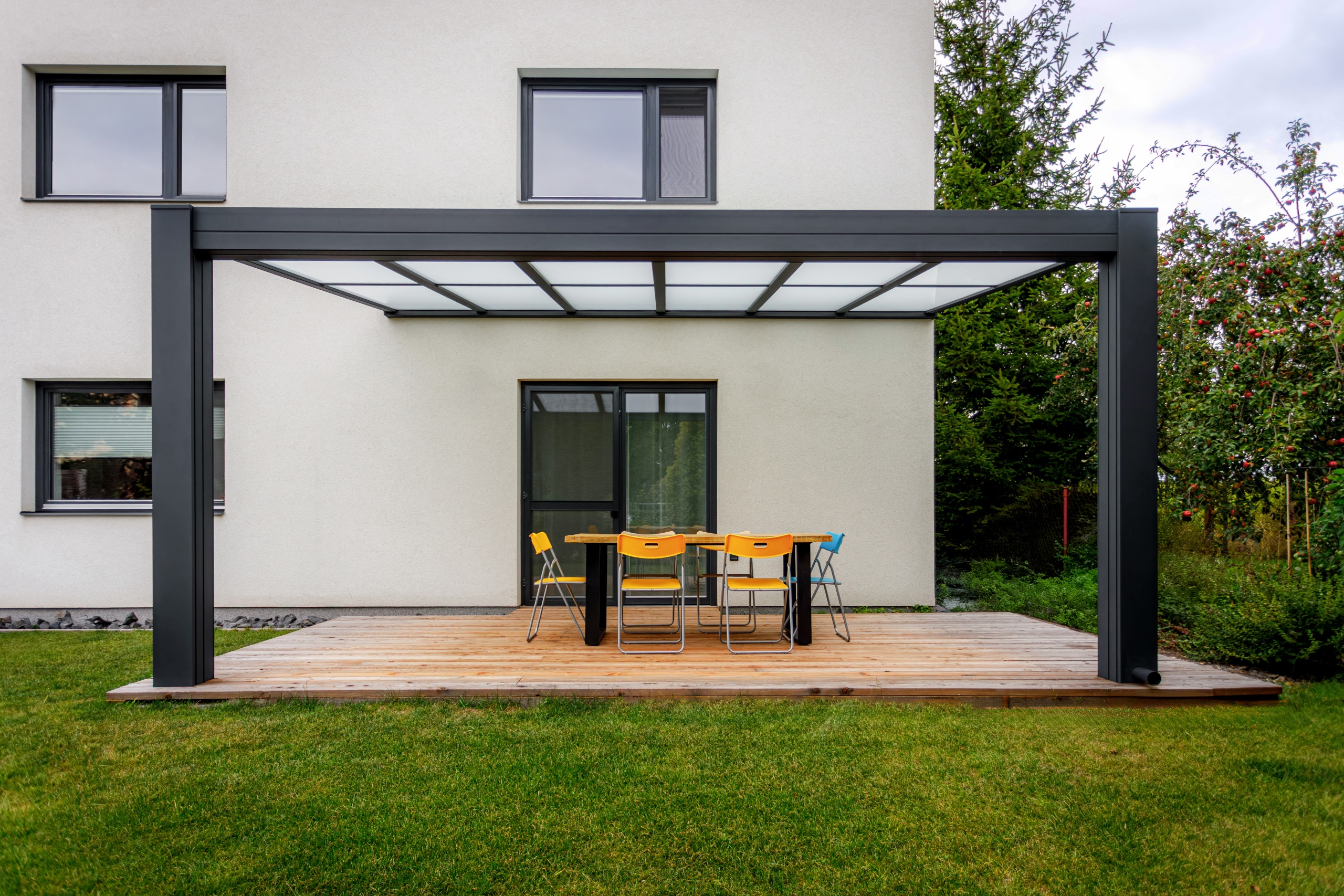Pergola přisazená ke stěně